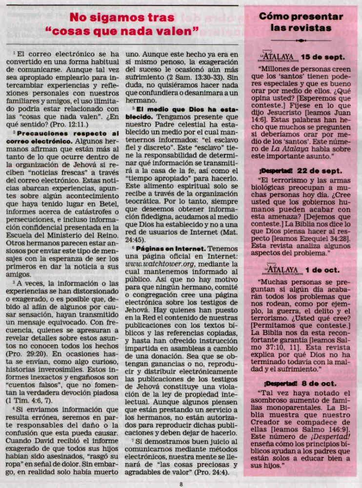 Pero es que, además, en Nuestro Ministerio del Reino de noviembre de 1999, razonan de pena.